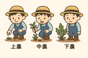 • 下農(残念な農夫)…雑草が生えても取らない。=問題があっても放置してしまう。